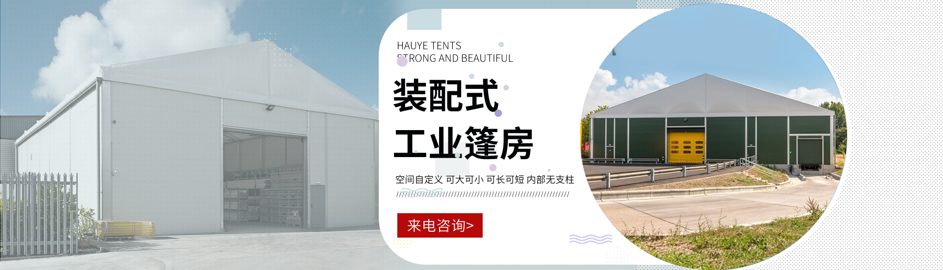 華燁篷房致力于為客戶提供安全的篷房產品,做一家有責任感、負責的公司。公司提供產品跨度3-80米,包含尖頂、人字頂、弧形頂 多拱形、多邊形、雙層以及多層篷房,主要用于體育,倉庫,工業,酒店,活動,展覽等多個行業及領域。同時我們產品都有專業的設計和安全 計算,可提供安全的定制服務......