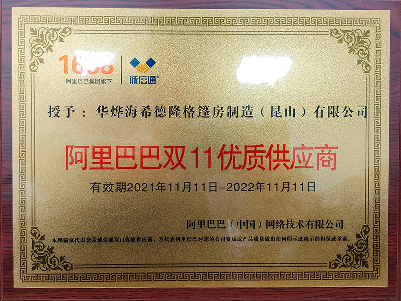 華燁海希德隆格篷房制造(昆山)有限公司入駐阿里巴巴4年,始終堅持客戶至上、誠信經營的原則,為廣大客戶提供了優質的裝配式鋁合金篷房產品和服務,今年11月,被評為阿里巴巴“雙十一優質供應商”。能夠得到阿里巴巴公司和客戶的認可,來自于華燁海希德隆格篷房制造(昆山)有限公司的每一位員工始終堅持的嚴謹認真的工作態度,和熱情周到的客戶服務。華燁海希德隆格篷房制造(昆山)有限公司阿里巴巴店鋪包括了工業篷房、體育場館篷房、機庫篷房、礦業篷房、活動篷房、展覽篷房等等各個領域,應用非常廣泛。