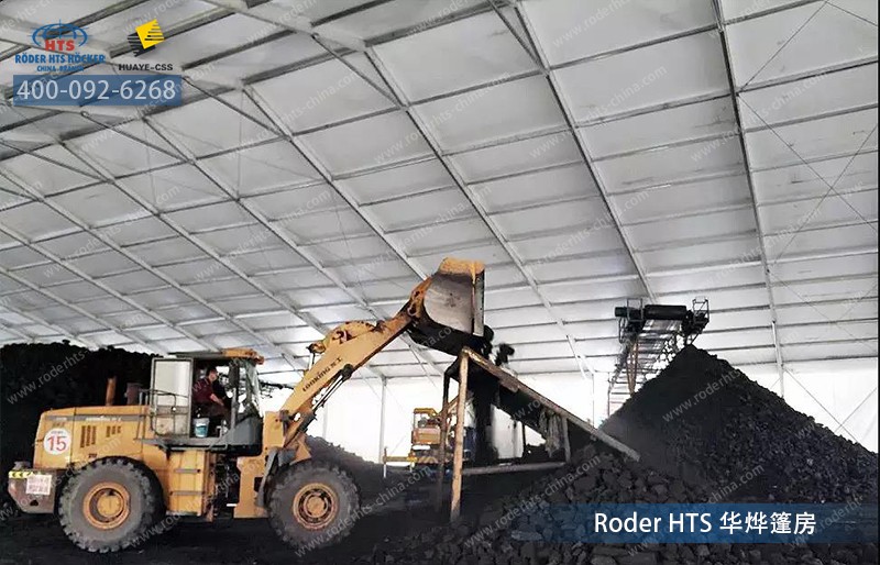 同時由于露天堆放,風吹日曬,會造成煤炭的熱值損失,即入場煤和入爐煤熱值的差。選擇鋁合金篷房全封閉煤場后,大風吹揚損失幾乎降為零,熱值損失也會大幅度下降。