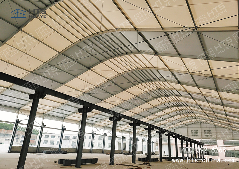 這種工業(yè)大棚框架采用鋁合金結構和PVC材質篷布搭建,整體采用模塊化搭建方式,施工不受地面限制,無需復雜地基處理,能夠節(jié)省大量的時間和費用,及時解決企業(yè)的使用需求。