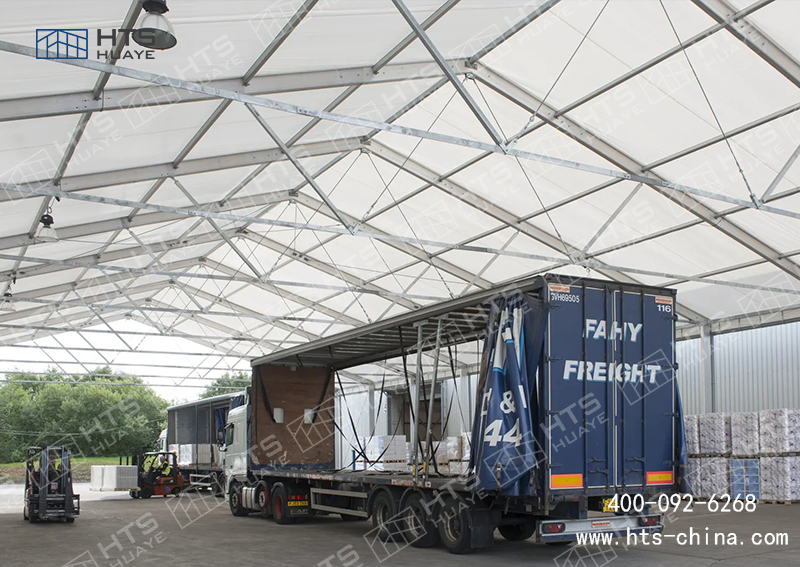 大型戶外倉儲篷房由模塊化結構組成,可實現空間與面積的快速擴充,結構牢固、質量可靠,能滿足短期、中期和半永久的不同使用需求。