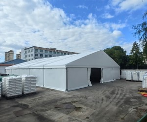 這兩座倉儲篷房規(guī)格是一樣的,寬度達(dá) 15 米,長度為 25 米,邊高 3.5 米,內(nèi)部空間寬敞開闊,可輕松容納多種物資設(shè)備,滿足招遠(yuǎn)核電項(xiàng)目日常物資存儲及周轉(zhuǎn)需求。