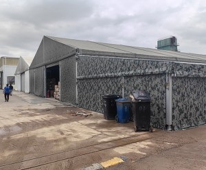 交付了 4 座迷彩工業(yè)倉儲篷房,其中規(guī)格分別為:7.5?50,3.7?15,6?6,12?16總面積接近 660 平方米