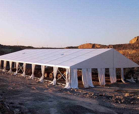 在礦石行業(yè)中,采礦科學技術是礦石破碎、松散物料運移、流體運輸在這個過程中,由于采礦工作中的流動性想實現空間循環(huán)利用,建筑物就必須可以移動。在此期間,咨詢了多家臨時建筑廠家,包括鋼構、活動房、鋁合金篷房等,最終決定使用鋁合金篷房,選擇了華燁篷房。