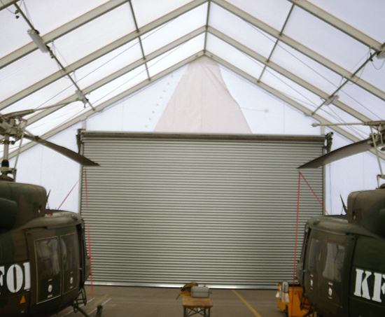 華燁篷房根據客戶的需求提供了一個16.00 m x 22.50 m mh16維護吊架機庫篷房,內部配有完整的電氣組件和暖通空調。門的開度為11米x 4米,以允許直升機進入。總的掛鉤吊架和暖氣可以打包并儲存在一個20英尺的容器中,以便在世界任何地方部署。?