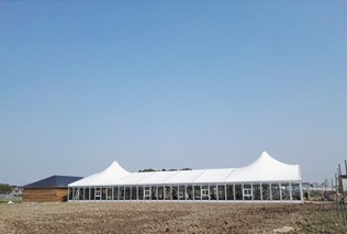 篷房主體分為框架、頂篷以及四周邊墻,邊墻事獨立的,你可以選擇它的材質,也可以選擇要不要安裝邊墻,它主要起到圍擋的作用,不同用途下需要 選擇不同的邊墻材質,常見的邊墻材質有:PVC篷布、玻璃、ABS板、巖棉夾芯板、單層彩鋼板等。