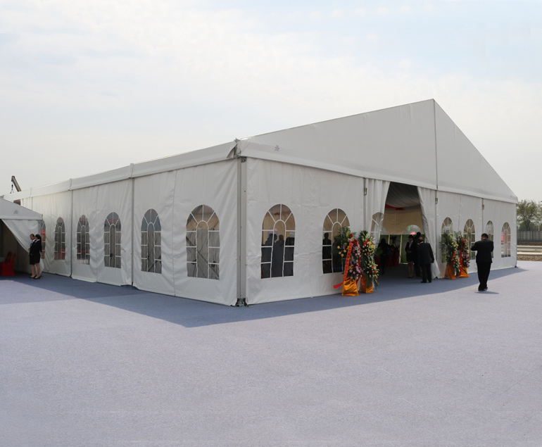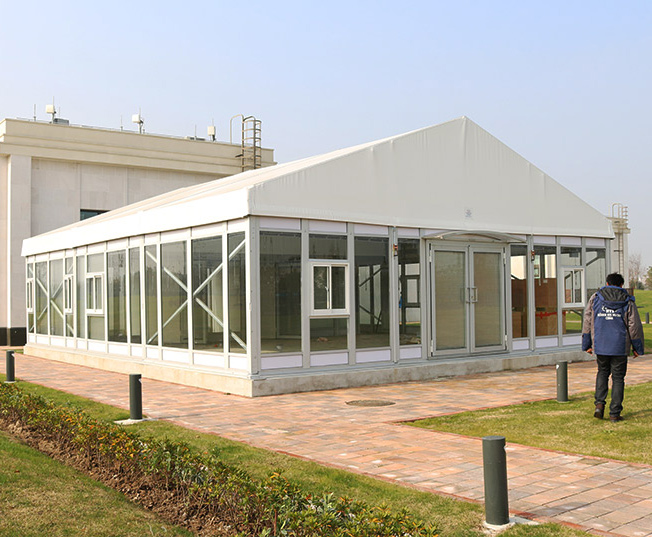 篷房主體分為框架、頂篷以及四周邊墻,邊墻事獨(dú)立的,你可以選擇它的材質(zhì),也可以選擇要不要安裝邊墻,它主要起到圍擋的作用,不同用途下需要 選擇不同的邊墻材質(zhì),常見的邊墻材質(zhì)有:PVC篷布、玻璃、ABS板、巖棉夾芯板、單層彩鋼板等。